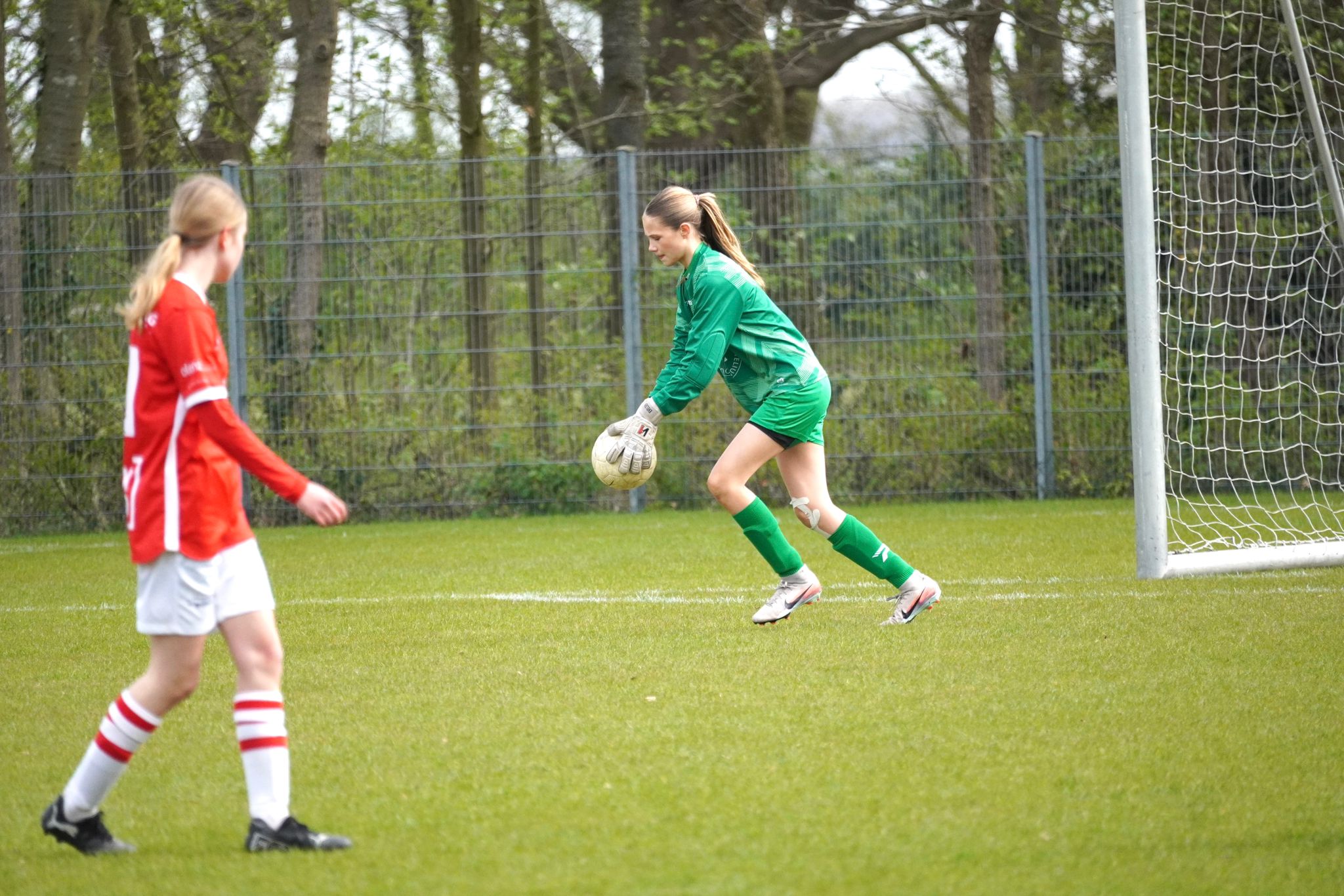 DOVO probeerde het spel compact te houden en vooral met lange, diepe ballen gevaarlijk te worden, maar daar hadden we goed antwoord op. Door onze snelheid en druk naar voren wisten we steeds weer door de verdediging heen te breken. Dat resulteerde in een comfortabele 4-0 voorsprong bij rust.